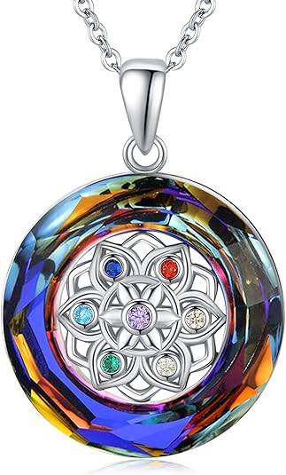 7 Chakra Sterling Silver Necklace. Classic mandala embellished with Austrian Crystals.